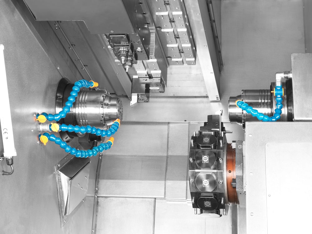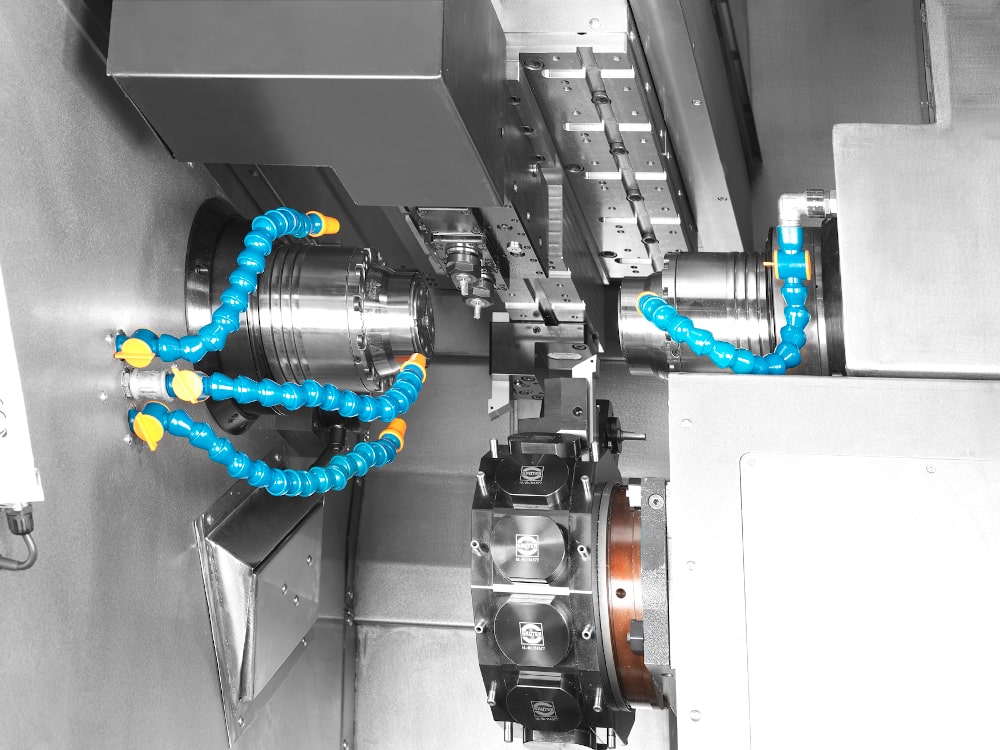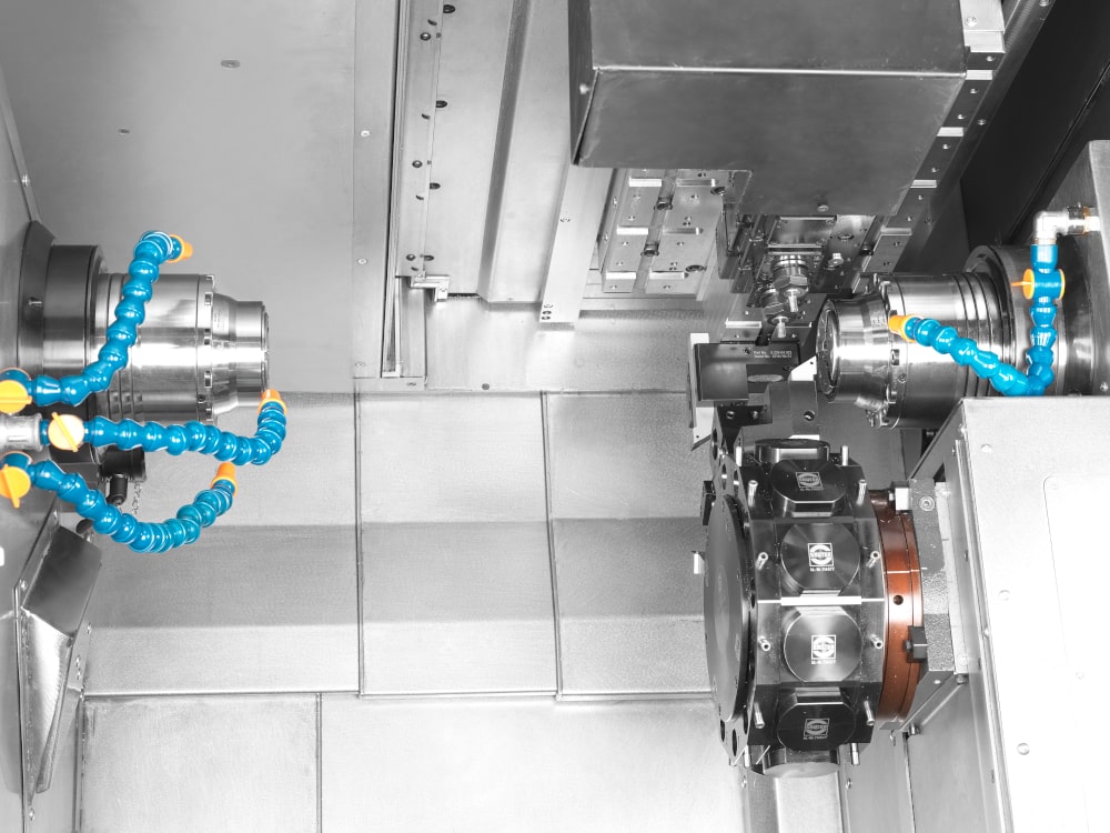 Estas máquinas ofrecen una combinación formada por un único carro superior con peines de herramientas de tres ejes y un carro inferior de sistema torreta de dos ejes. Los peines de herramientas permiten cambios de herramienta extremadamente rápidos y el eje Y permite un amplio rango de operaciones simultáneas de torneado y fresado tanto en el cabezal principal como en el subcabezal.
