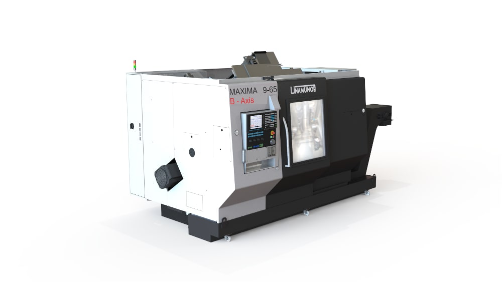 La máquina MAXIMA 9B está diseñada para conseguir la solución más productiva y efectiva en coste para las cada día mayores exigencias del mercado del decoletaje a partir de barra o plato en una única atada. La producción de componentes simples o complejos se realiza de forma sencilla con la capacidad multiherramienta y multitarea de la máquina MAXIMA 9B.