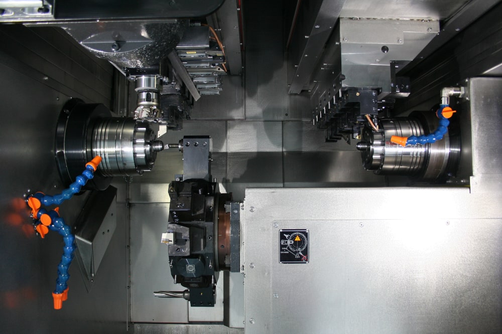 Estas máquinas ofrecen una combinación formada por dos carros superiores con peines de herramientas y un carro inferior de sistema torreta. Los peines de herramientas permiten cambios de herramienta extremadamente rápidos y el eje Y permite un amplio rango de operaciones simultáneas de torneado y fresado tanto en el cabezal principal como en el subcabezal.