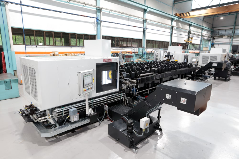 La máquina dispone de 4 cabezales de mecanizado (dos en parte izquierda y dos en parte derecha), permitiendo el mecanizado simultáneo en ambos extremos, de 4 tubos a la vez.