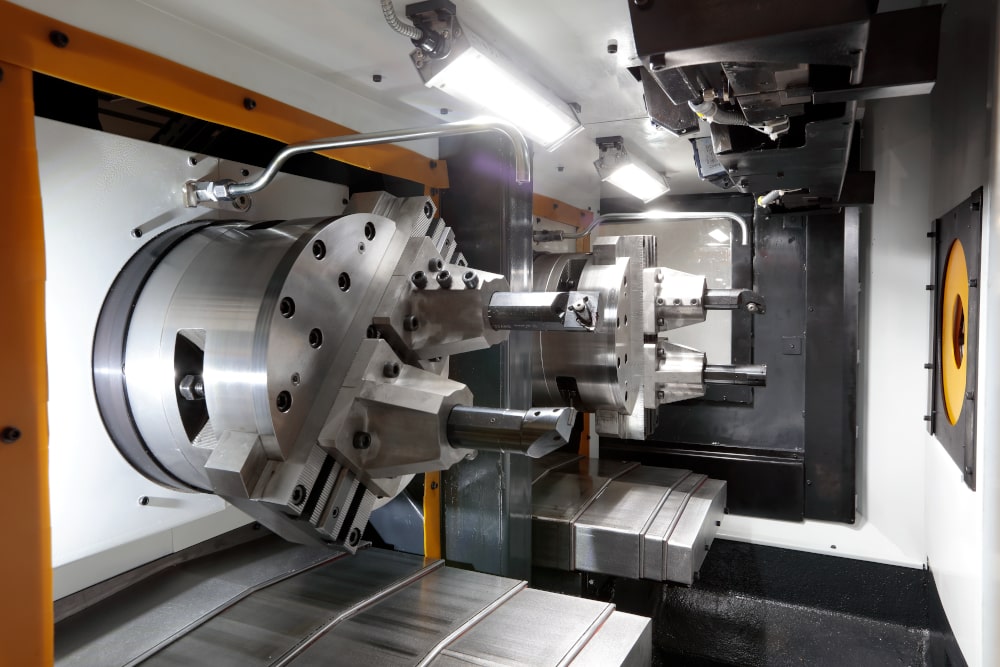 El tubo permanece parado y es el cabezal el que gira las herramientas para realizar diferentes operaciones: torneado, refrentado, achaflanado o roscado.