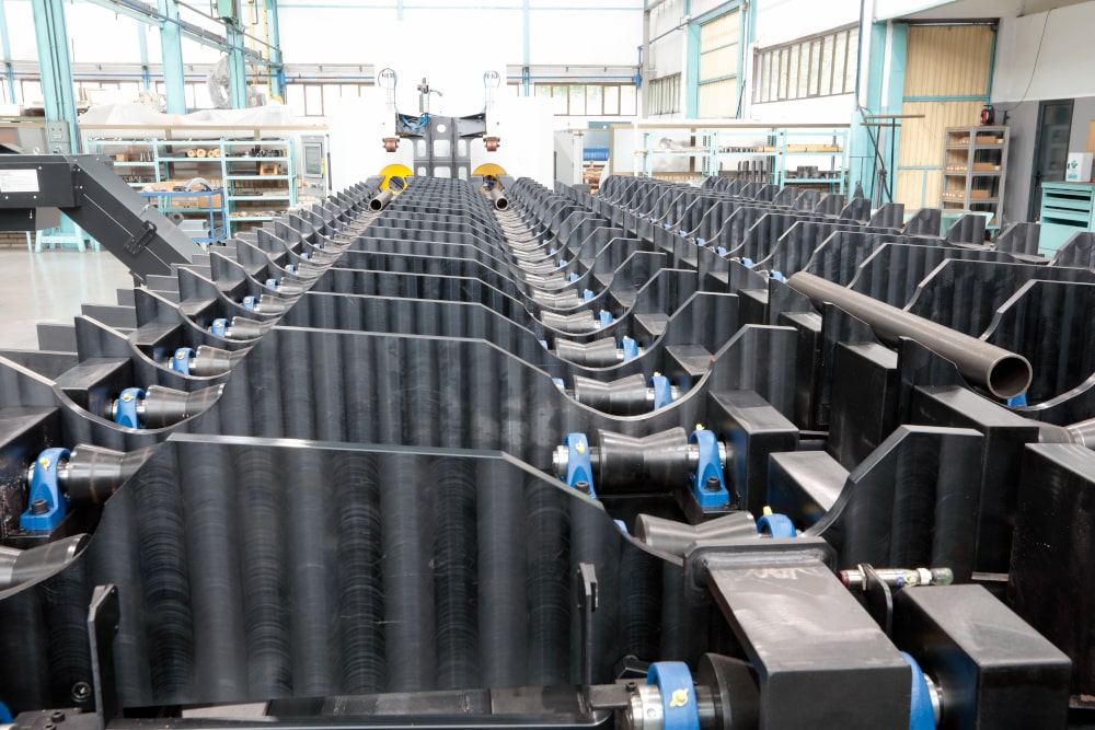 La máquina se carga de tubos para más tarde devolverlos mecanizados en el otro extremo de la máquina.